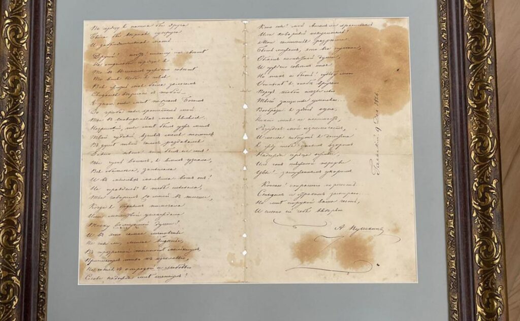 Рукопись письма Татьяны из «Евгения Онегина» с автографом Пушкина представили публике