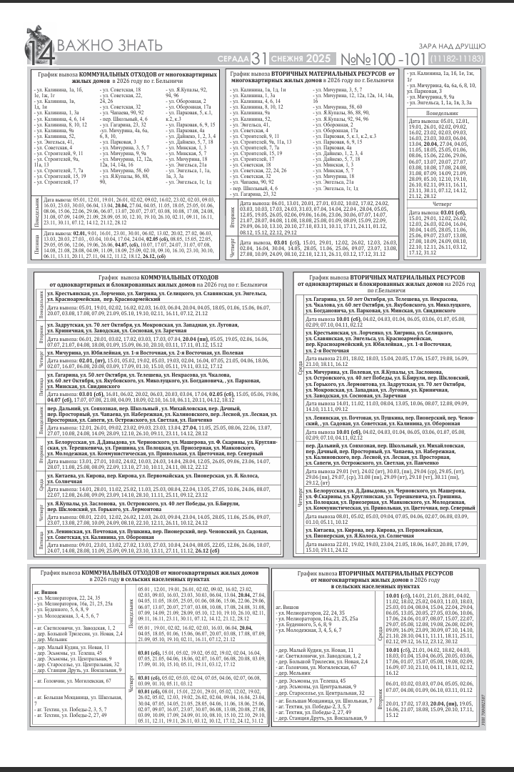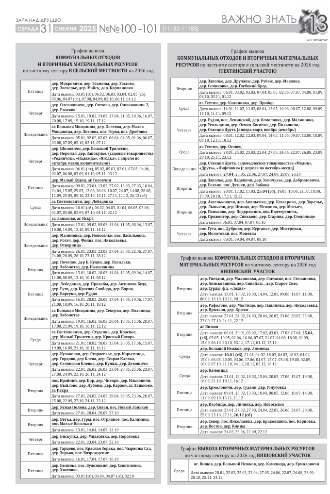 График вывоза мусора на 2026 год