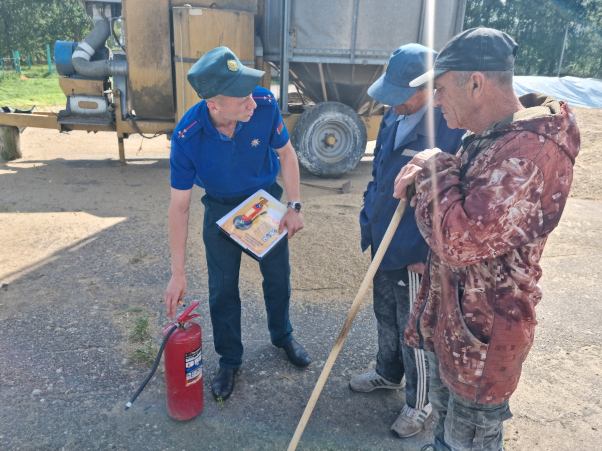 Большое внимание уделяется знанию работников, задействованных в уборке урожая, элементарных правил пожарной безопасности, алгоритма действий в случае возникновения пожара, номеров телефонов экстренных служб. Инспектора РОЧС проводят беседы с работниками, напоминают об ответственности за нарушение законодательства в области пожарной безопасности.