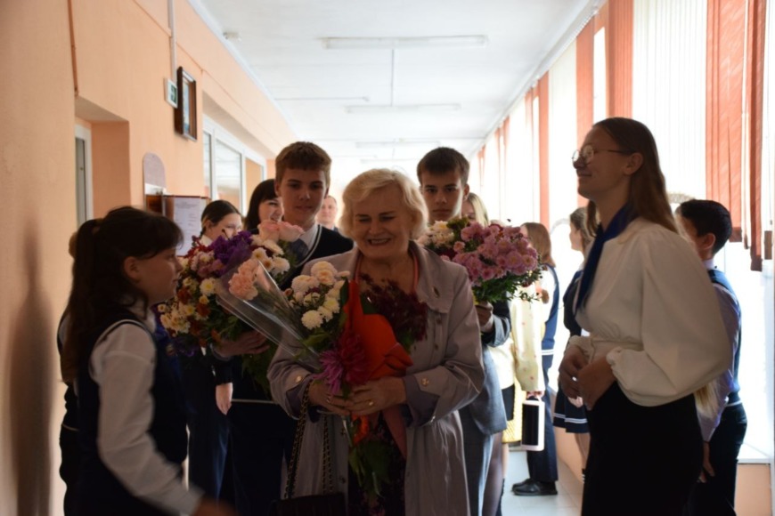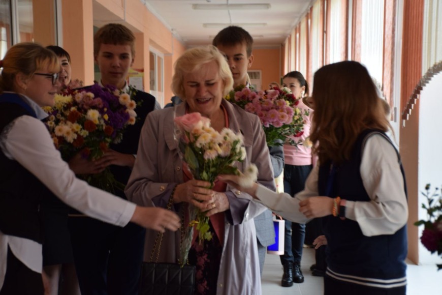 В этот день учащиеся и коллектив школы подготовили для неё трогательное поздравление, много цветов и подарков, а также тёплых слов и улыбок.