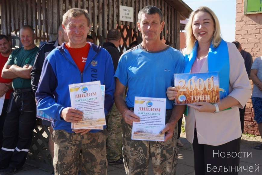 Шесть водителей преодолели отметку в тысячу тонн на отвозке зерна: Александр Голосов, Сергей Блиновский, Владимир Лисик, Григорий Козин, Александр Горбач, Константин Зайцев.