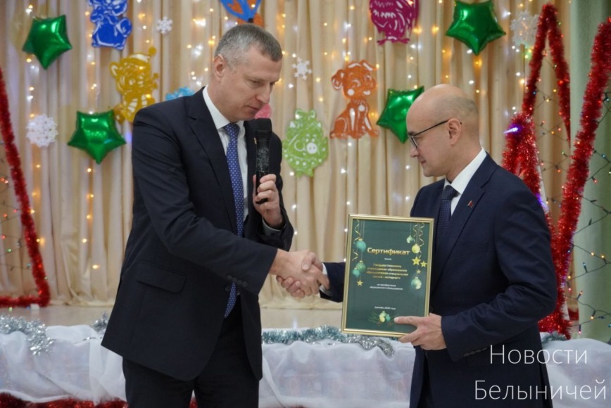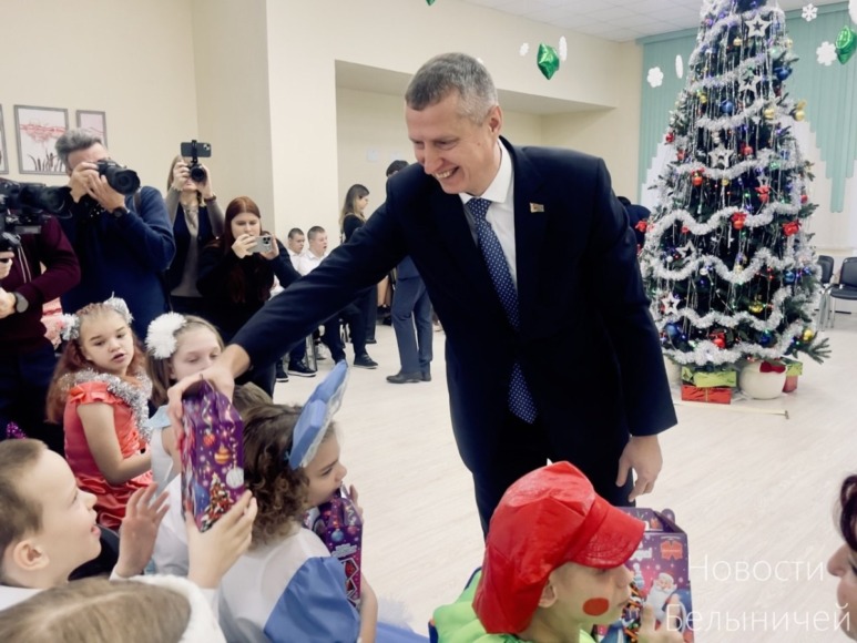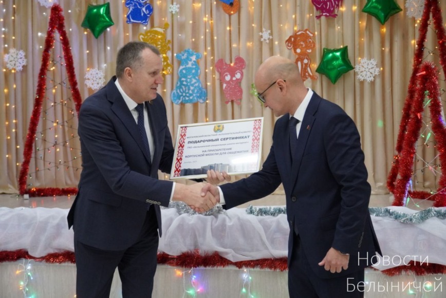 Поздравили детишек с наступающими праздниками, подарили им подарки и веру в волшебство также председатель Могилёвского облисполкома Анатолий Исаченко, помощник Президента — инспектор по Могилевской области Сергей Наливайко и председатель райисполкома Ольга Пристромская. В своем приветственном слове Дмитрий Крутой и Анатолий Исаченко поблагодарили педагогов за нелегкий труд – воспитание особенных деток, а также передали для учреждения сертификаты на приобретение медицинского оборудования и корпусной мебели.