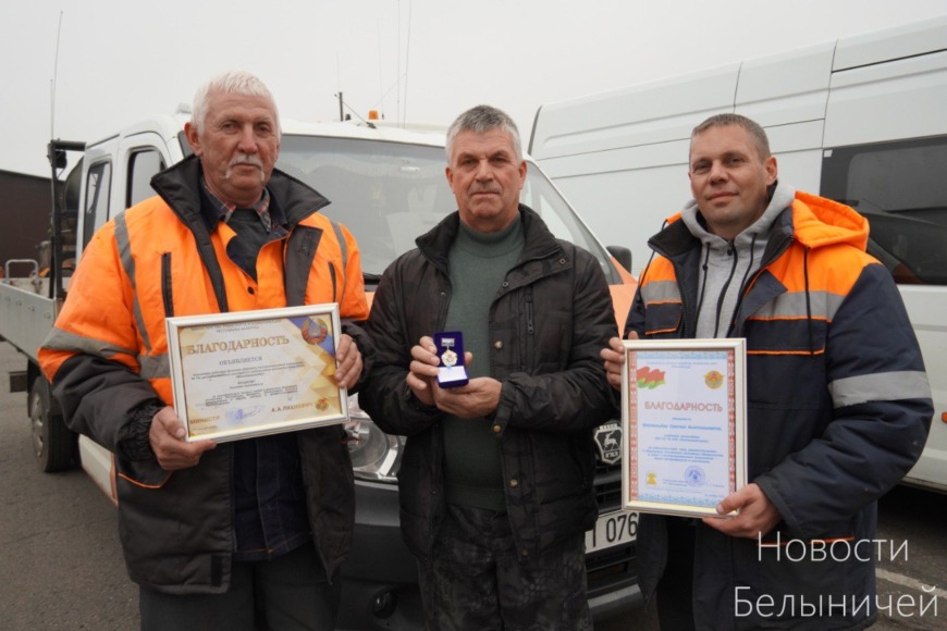 На торжественных собраниях в ДЭУ-74 и ДРСУ-170 с участием представителей областных ведомств звучали благодарности за оперативность при ликвидации последствий непогоды, за экономное и бережное отношение к технике и ресурсам, а также за соблюдение правил безопасности на дороге.