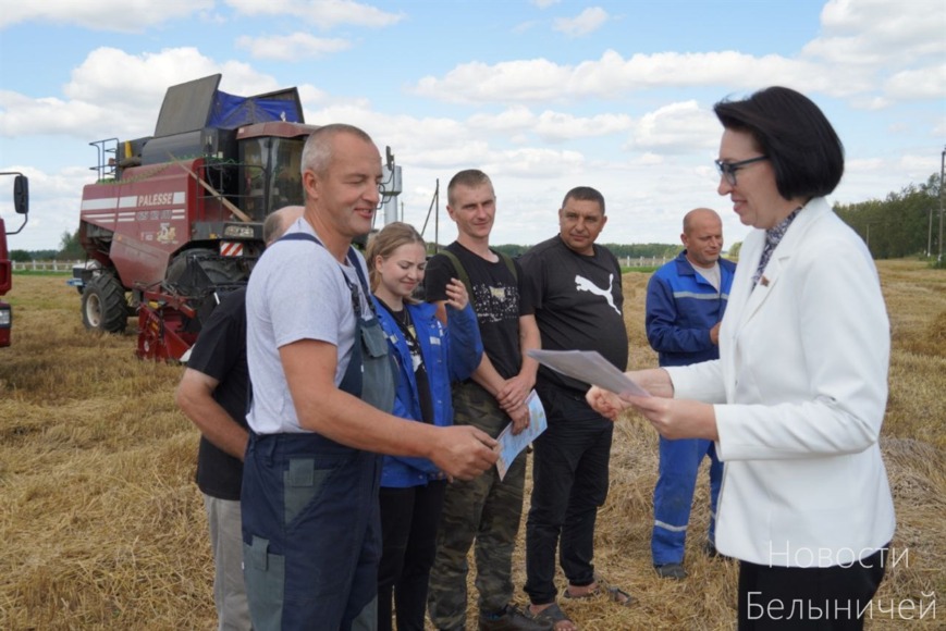 По традиции героев уборочной чествовали представители исполнительной власти района в лице председателя райисполкома Ольги Пристромской вместе с профсоюзным лидером работников АПК Алесей Новиченок, руководством хозяйства.