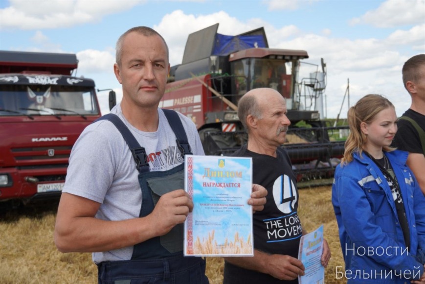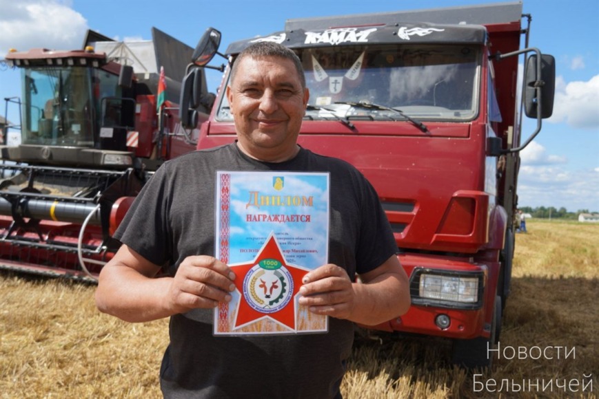 Еще два экипажа и два водителя ОАО «Белыничская Искра» пополнили ряды «тысячников» жатвы-2025 Придрутского края.