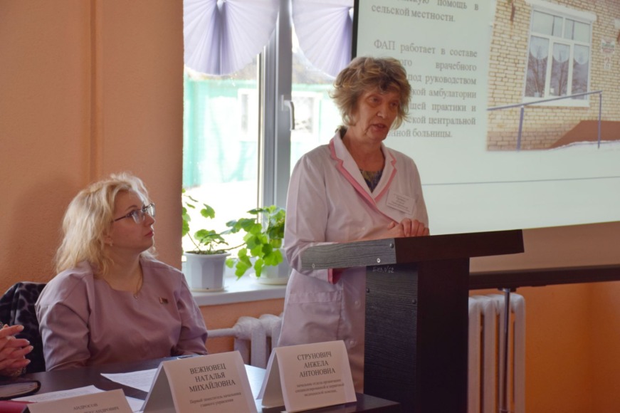 Перед коллегами выступили и.о. главного врача райбольницы Александр Клещенок, а также заведующий Эсьмонским ФАПом Елена Телеш, которые подробно остановились на организации медицинской помощи от сельского до районного уровня, диспансеризации и проведении медобследований.