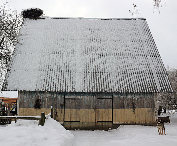 пор в нём и проживают. Да дом такой необычный! Прям дизайнерской работы, вида нездешнего. Смотрю и пытаюсь понять, на что постройки хозяйственные похожи. Один сарай напоминает какое-то южное строение из краев приморских – из блоков с вмонтированными булыжниками, с прогулочной площадкой вместо крыши, огороженной перилами. Второй – высоченный, деревянный, на старой Руси в богатых хозяйствах такие строили. Кстати, на нём с давних пор-огромное гнездо аиста. В общем, из разных культур по чуть-чуть. И не диво. Хозяин, который всё это придумывал и строил, лётчиком был, Александр Васильевич Муравьёв – личность