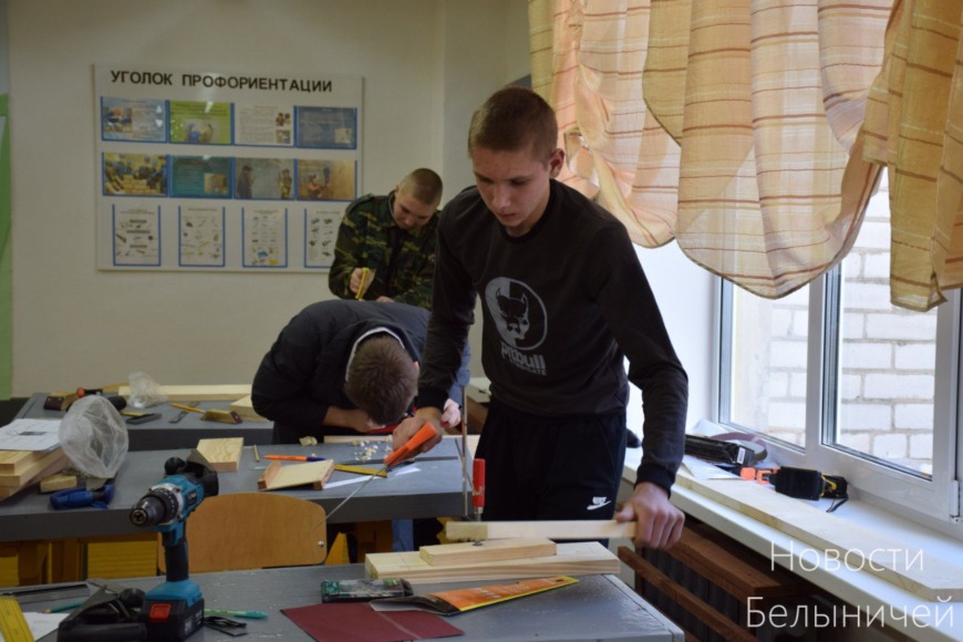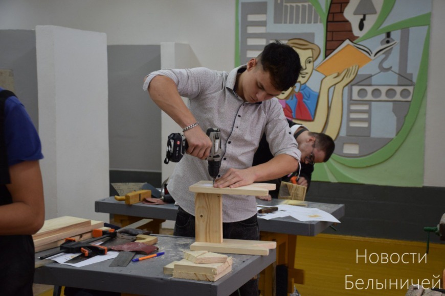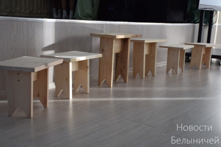 Практические задания раскрыли творческий потенциал ребят. Учащиеся 8-х классов, мальчики, работали над изготовлением деревянного пазла, ребята на класс старше собирали табуреты. Девочки 8-9 классов изготавливали салфетки, украшенные тесьмой.
