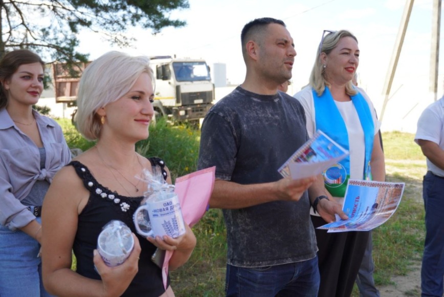 Поздравить героев жатвы, выразить слова благодарности за самоотверженный труд и пожелать дальнейших успехов приехали Александр Смычек – первый заместитель председателя райисполкома – начальник управления по сельскому хозяйству и продовольствию, Алеся Новиченок – председатель райкома профсоюза работников АПК, Эдуард Орешко – генеральный директор ОАО «Бабушкина крынка» — управляющая компания холдинга «Могилевская молочная компания «Бабушкина крынка», а также его заместитель по сельскому хозяйству Инна Белявская вместе с коллективом «Новой Друти».