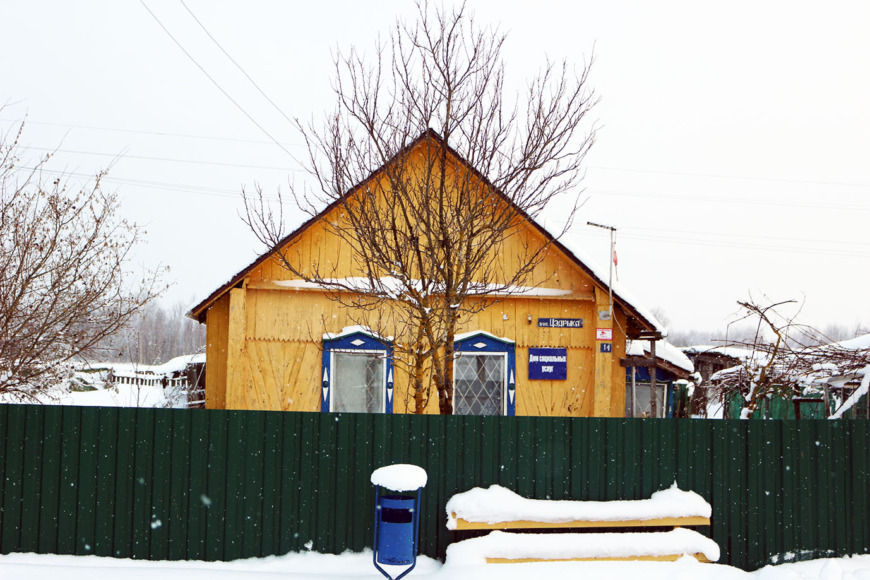 стоит жёлтая добротная хата на углу с вывеской «Дом социальных услуг», которая Надежде Владимировне и принадлежит. В ней мы все и сидим – разговоры разговариваем. А это ж – милое дело в деревне: собраться в натопленной хате, когда за окном пурга крутит да в окна пригоршнями снег швыряет, да рассказами о былом и настоящем друг другу души согреть.