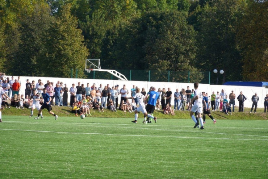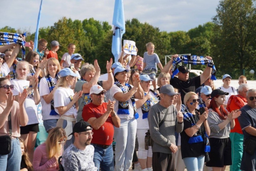 Прямо сейчас на обновленном городском стадионе проходит футбольный матч между белыничским ФК «Друть» и минскими «Крумкачами».