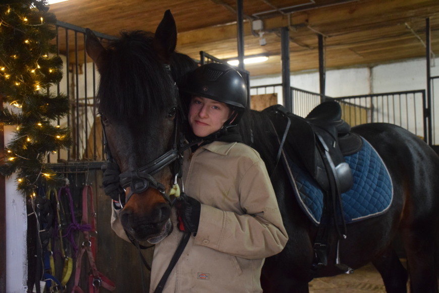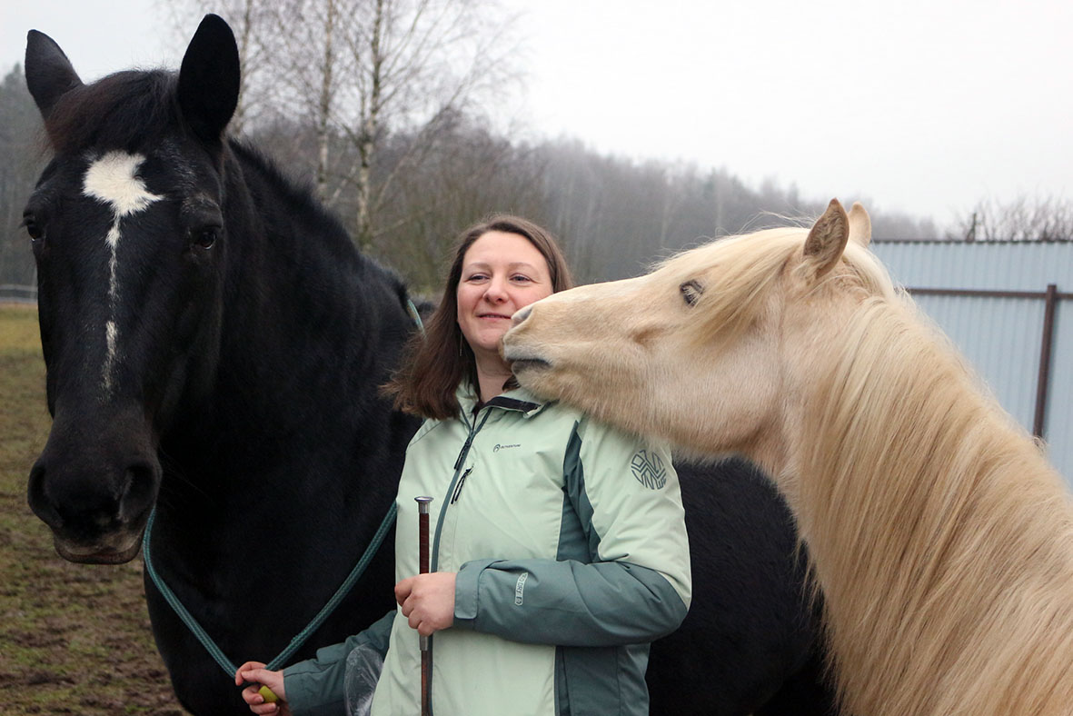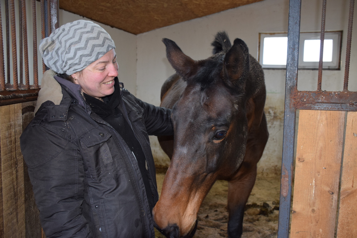 «Полесская нива» на Брестчине. Корни его предков берут своё начало в Нидерландах, он – породистый жеребец королев ской теплокровной лошади. Именно эта порода на протяжении многих десятков и сотен лет верой и правдой служила лучшим европейским королевским домам. Иниборг полностью оправдал свой статус «главнокомандующего», долго он показывал свой характер, не хотел смиряться перед своими хозяевами, выполнять нужные команды. А потом неожиданно выбрал себе в друзья старшего сына Евгении Мишу и теперь больше всех его приветствует и очень бережно держит на сво ей спине. Миша выполняет на Иниборге различные элементы выездки (вида конного спорта).