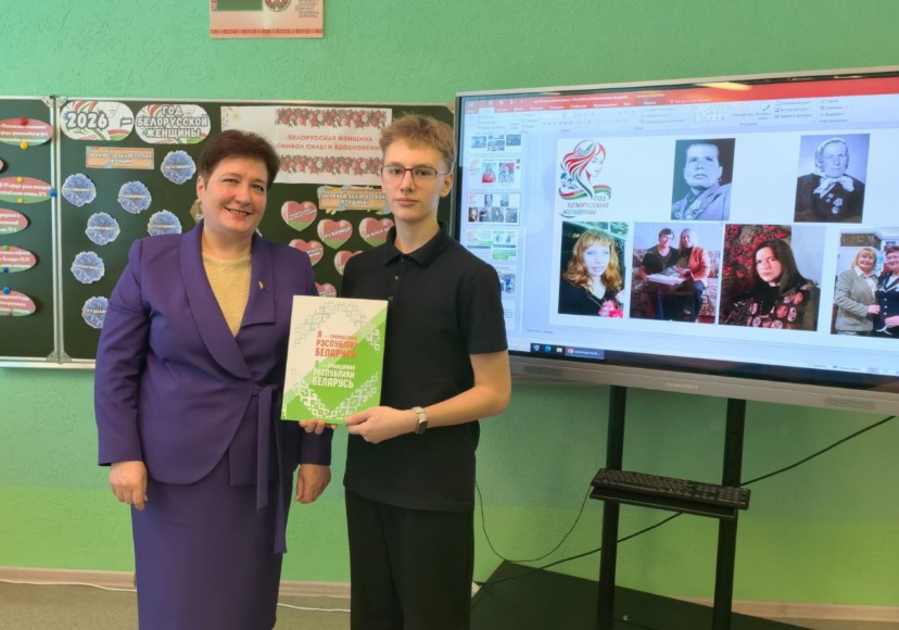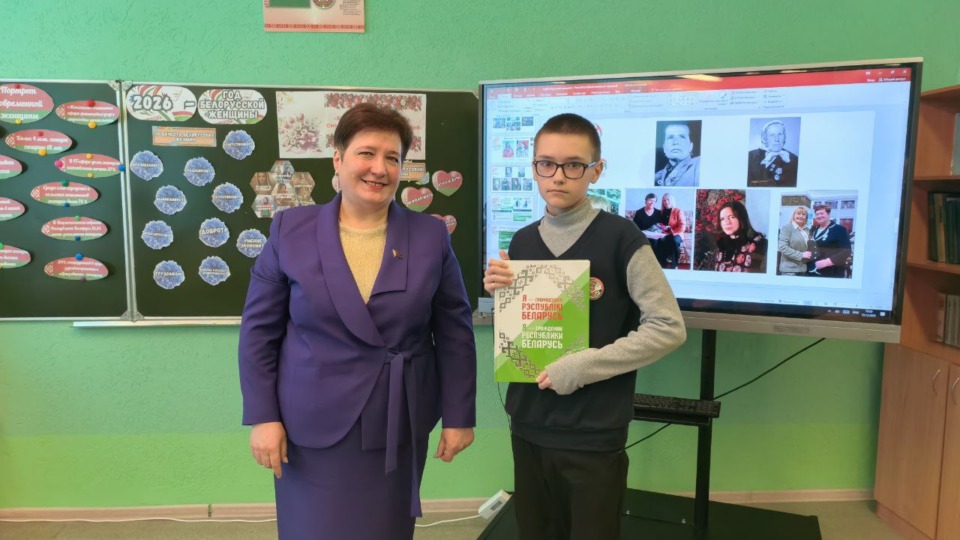 Лидеру депутатского корпуса Придрутского края была предоставлена честь вручить памятные издания «Я – грамадзянін Рэспублікі Беларусь» учащимся, достигшим 14-летнего возраста.